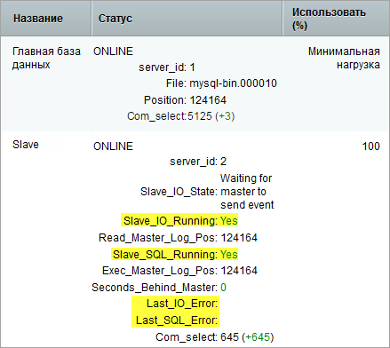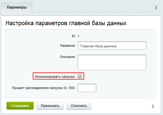 Укажите процент распределения нагрузки для каждой базы. Эта опция перераспределяет большую часть нагрузки на более быстрые и мощные серверы в составе кластера.