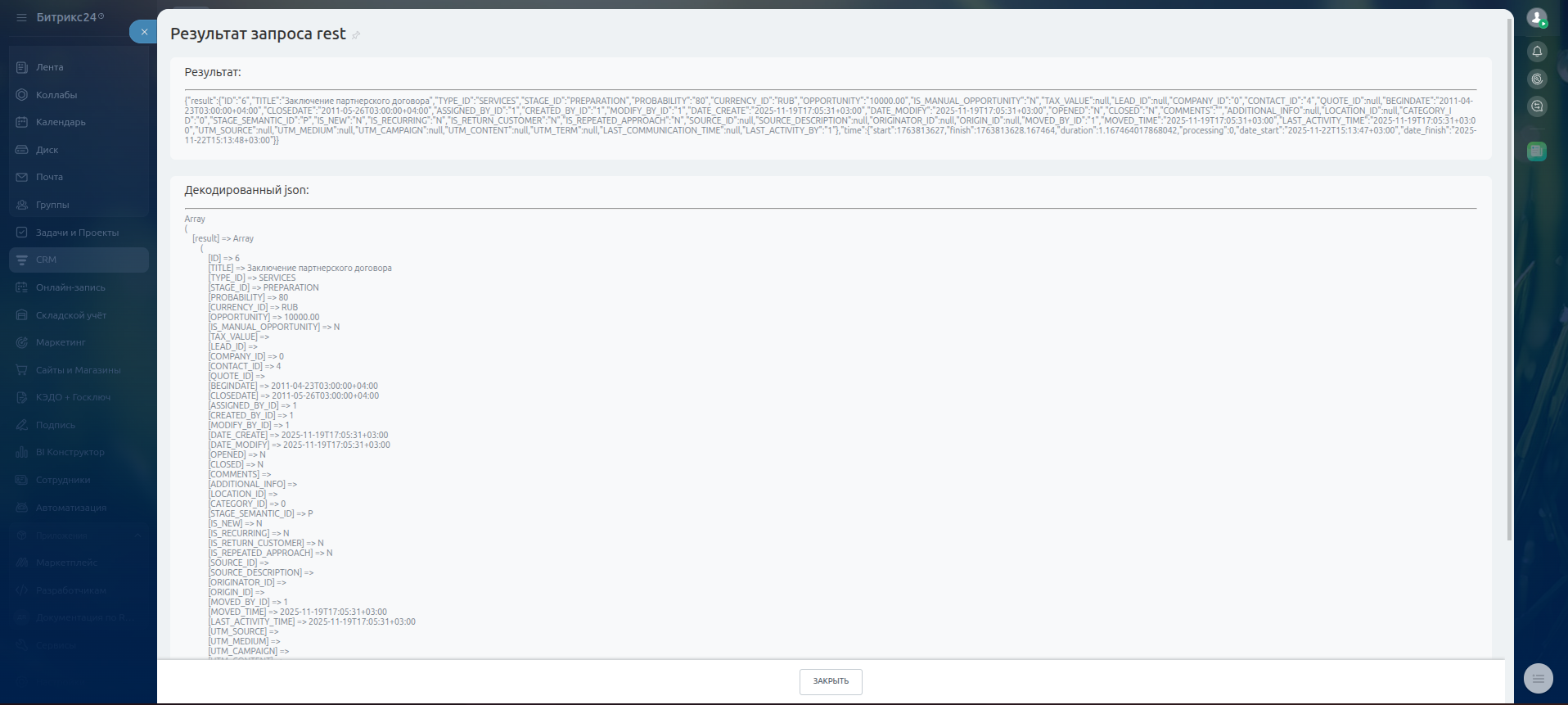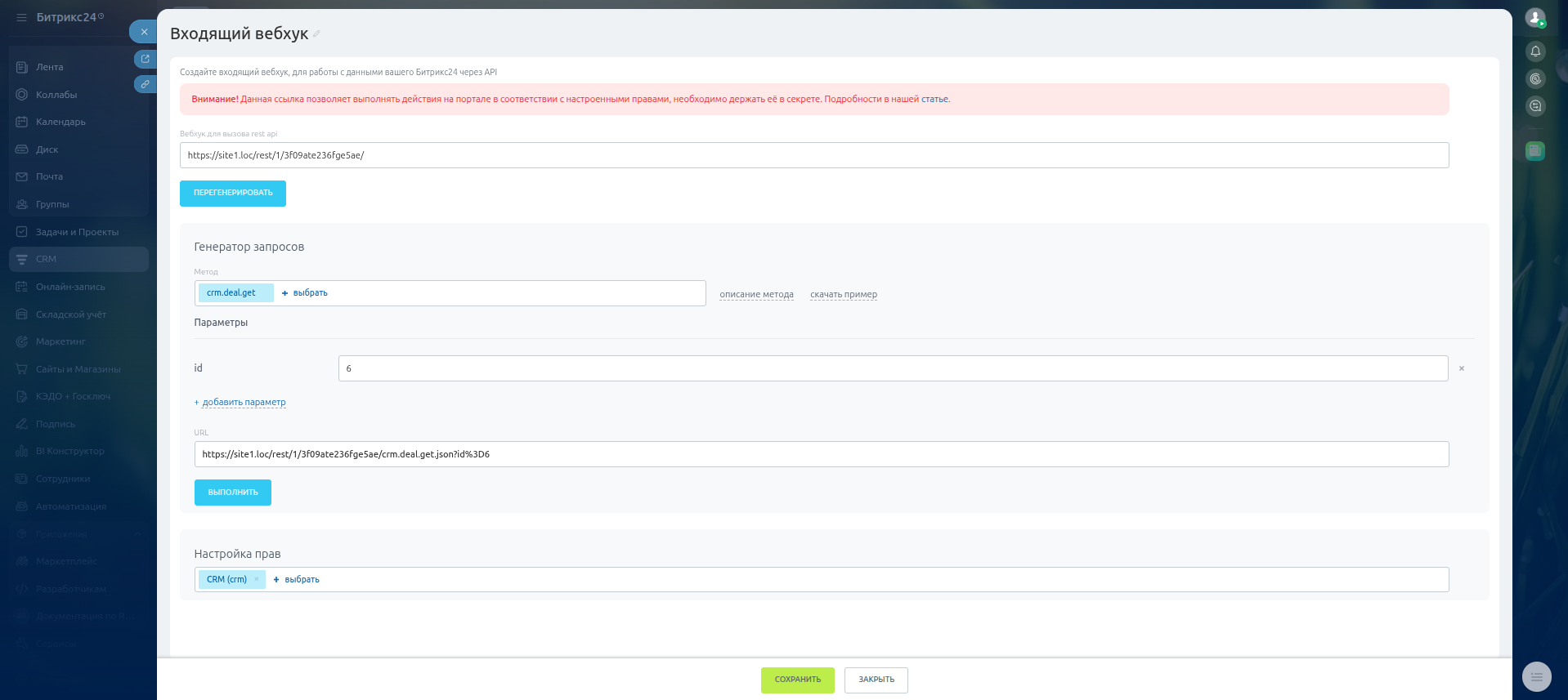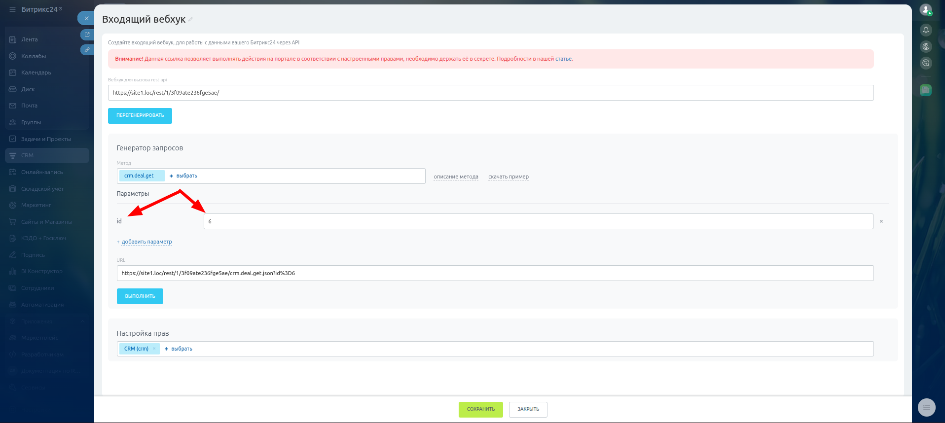 Помните, что чужие ключи недоступны никому, даже администратору портала. Если администратор попытается внести изменения в чужой вебхук, то все настройки будут сброшены, а он станет владельцем этой интеграции.